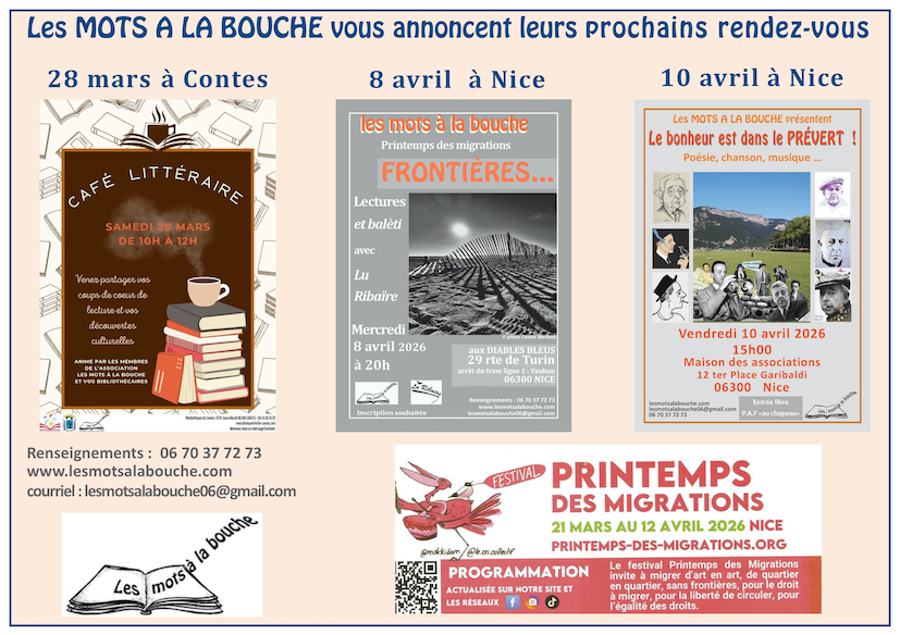 Comme tous les trimestres, nous nous sommes retrouvés à la médiathèque de Contes avec les bibliothécaires et des membres des Mots à la bouche pour échanger en toute simplicité sur nos dernières lectures …