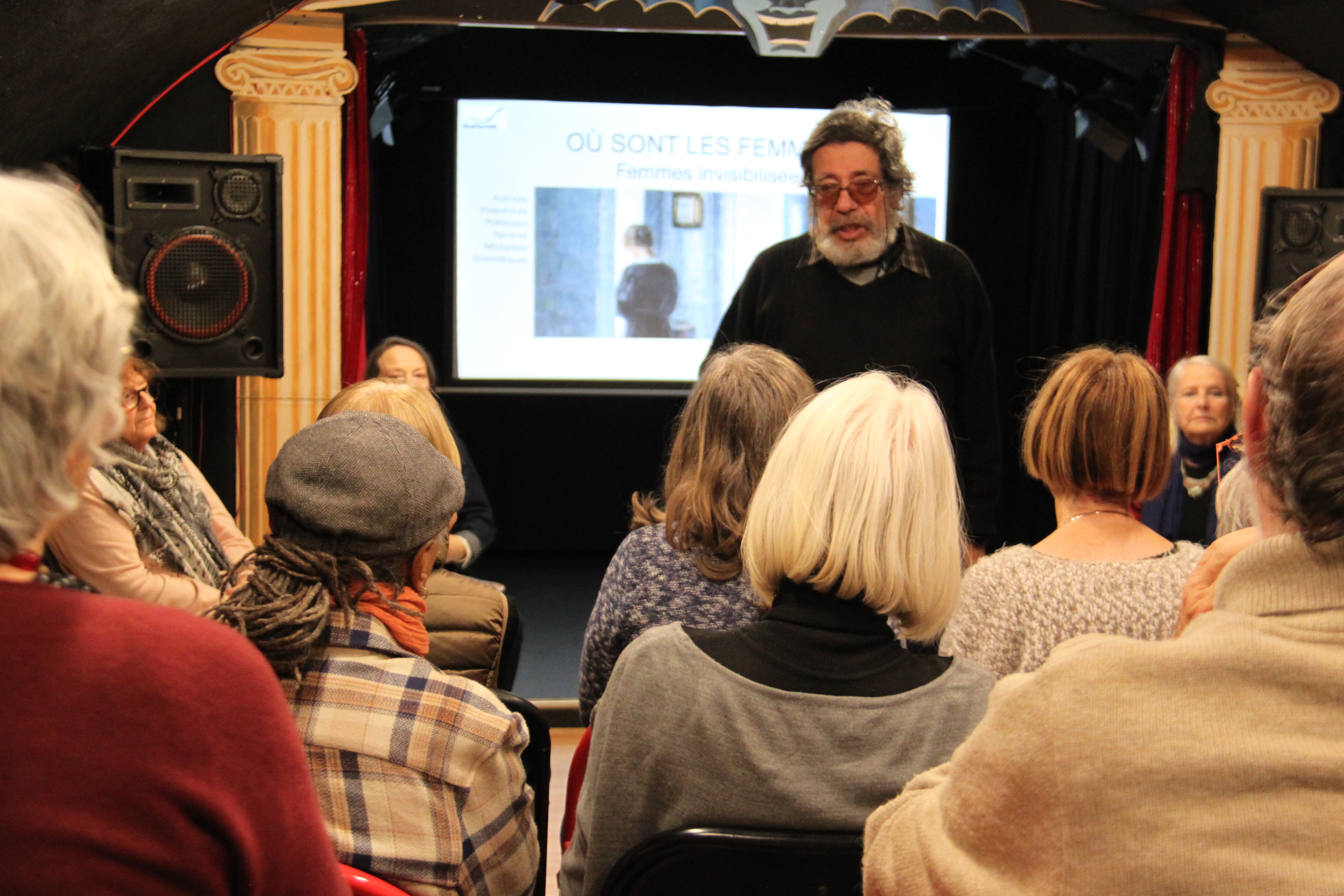 Devant une vingtaine de spectateurs, courageux d’avoir affronté la pluie diluvienne, nous avons proposé quelques portraits de femmes invisibilisées par la société : elles furent peintres, artistes, médecins, musiciennes, scientifiques, chercheuses, écrivaines ou militantes : Françoise Gilot, Dr James Barry, Fanny Mendelssohn, Mileva Einstein, Marguerite Keane, Nathalie Lemel, Théroigne de Méricourt, Catherine Pozzi, Marthe Gautier, Vivian Maier, Rosalind Franklin, Grisélidis Réal.