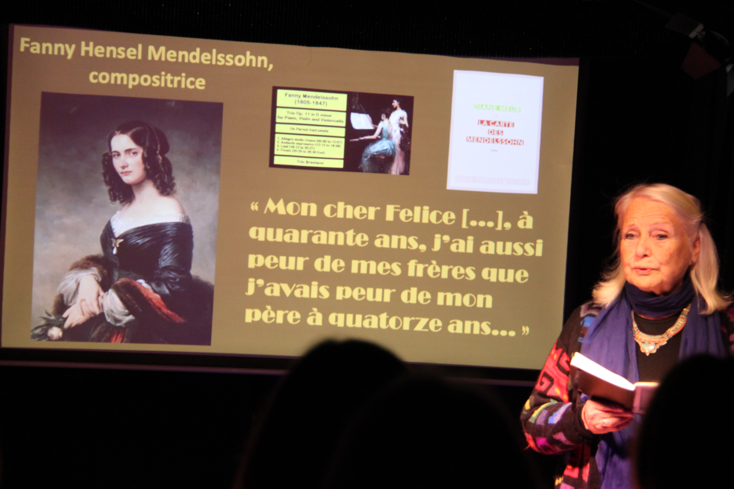 Des images projetées ont accompagné les textes ainsi que des extraits de compositions de Fanny Mendelssohn exécutées par le trio Brentano (trio en ré mineur opus 11 et mélodie n°2 piano, violon et violoncelle).